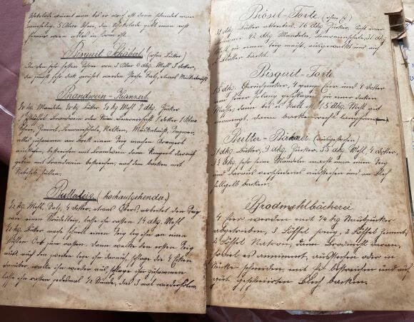 I habe just returned from a wonderful couple of days surrounded by my lovely family in Vienna. My cousin handed me a very precious book. It's his grandma's handwritten cookery book. She started compiling the book around 1930 in Bohemia and there are wonderful recipes that I will certainly try and replicate. But look at the neat handwriting. I must have taken her ages! What a treasure.